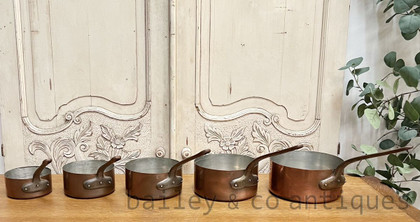 A Set of Five Vintage French Copper Saucepans Lined & Stamped - E491