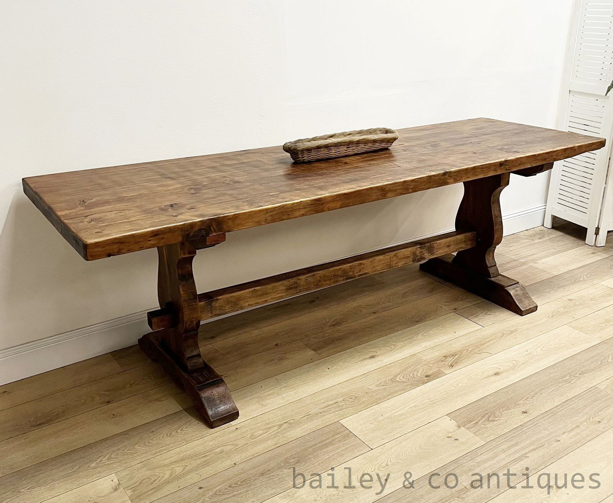 The shaped silhouette of the supports and the beautifully worn patina across the timber enhance the authentic provincial aesthetic.